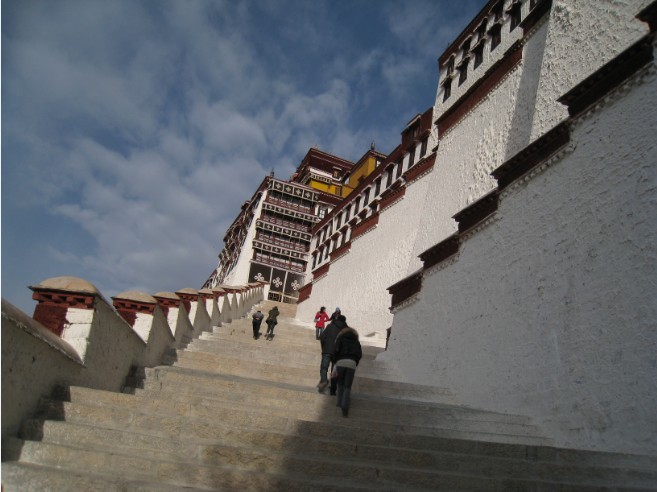 人們常說,西藏是每個人一生中都要去的地方。而渴望登上舉世聞名的布達(dá)拉宮的愿望也已由來已久。受西藏自治區(qū)交通公路勘察設(shè)計研究院衛(wèi)院長的邀請,我們于3月12日抵達(dá)拉薩。次日,我們來到布達(dá)拉宮一游,走到山腳下,就看到了絡(luò)繹不絕的前來朝拜的人群。在藏族人民心目中,布達(dá)拉宮是佛教圣地。每天都有上萬的人,到這里向布達(dá)拉宮頂禮膜拜,表達(dá)自己的一片虔誠之心。